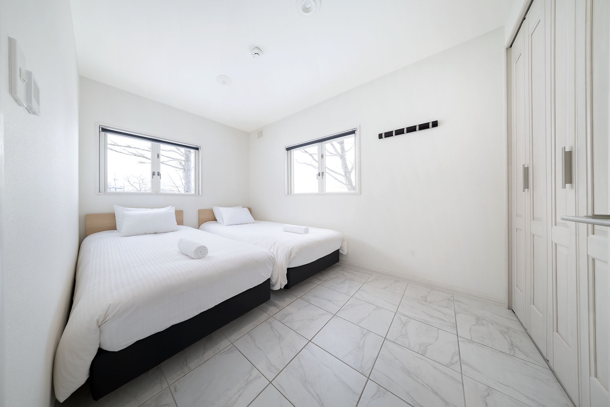 Powdersuites are only a ten-minute walk from Hakuba 47 ski resort and provide the perfect mountain escape for a family or friends. The two-bedroom chalets have 1 bath/shower and two toilets and are split between two levels. Both bedrooms are on the first floor, while the spacious living area and kitchen are upstairs.