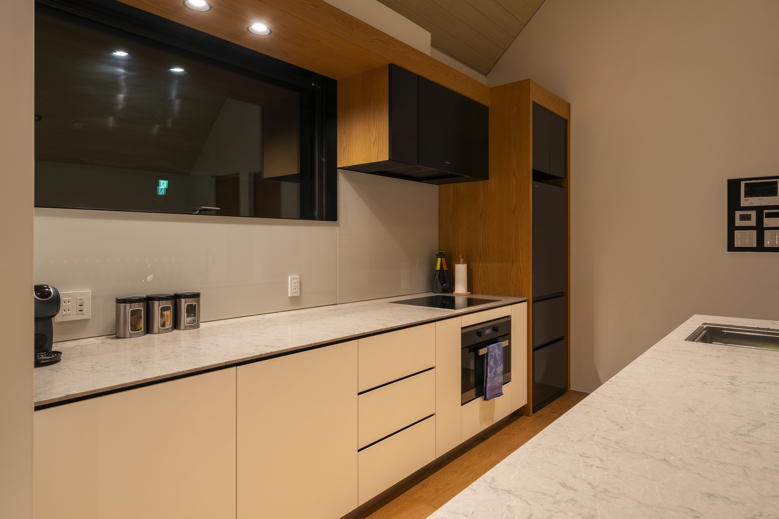 - キッチン:オープンスタイルのキッチンはMiele製オーブン電子レンジ・IHクックトップ・大型食洗機に加え、必要な各調理器具や食器が人数分揃います。