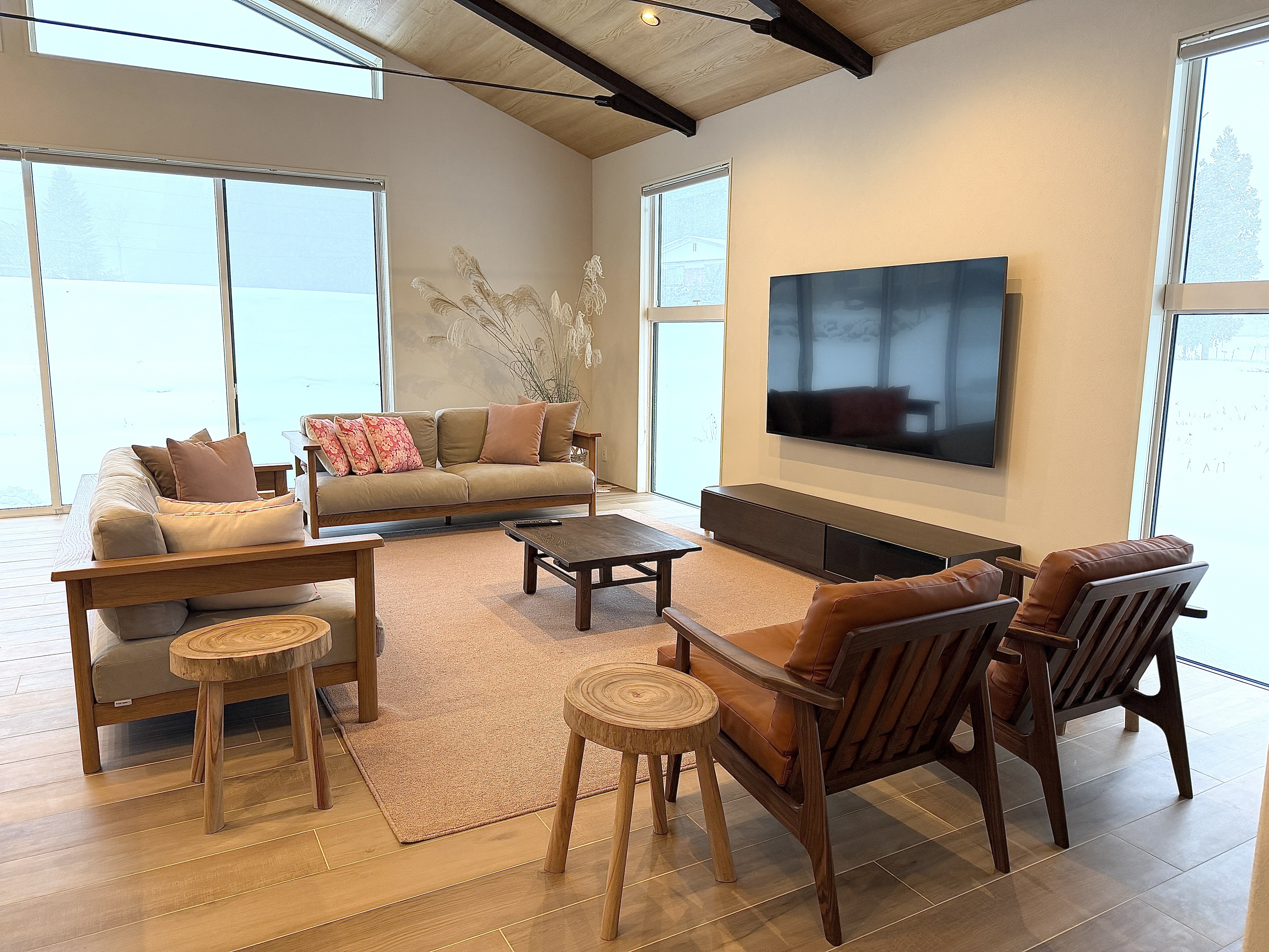 ”ザ・ムー”は平家と2階建が融合した特徴的な建物で、贅沢なスペースをエコーランドの中心に提供する大型6ベッドルームシャレーです。 2022年冬に完成しそのエキゾチックな内装でお客様の白馬ステイを演出いたします。